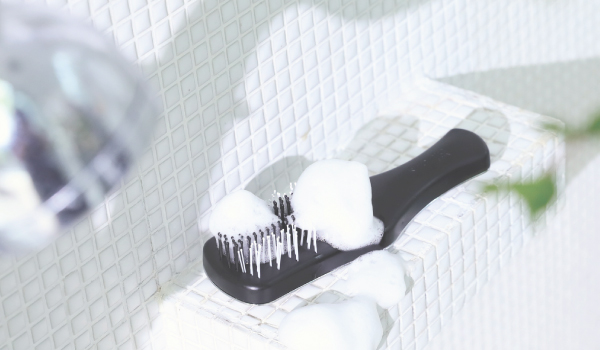 シャンプー前、濡らした髪を軽くブラッシング。汚れが分解されやすくなり、泡立ちアップ。