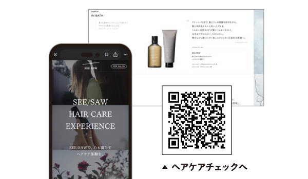 髪が整うと、気持ちも自然と前向きに。毎日のヘアケアが、少し楽しみになるはずです。SEE/SAWのある心地よい毎日を、まずは“体験”からはじめてみませんか?